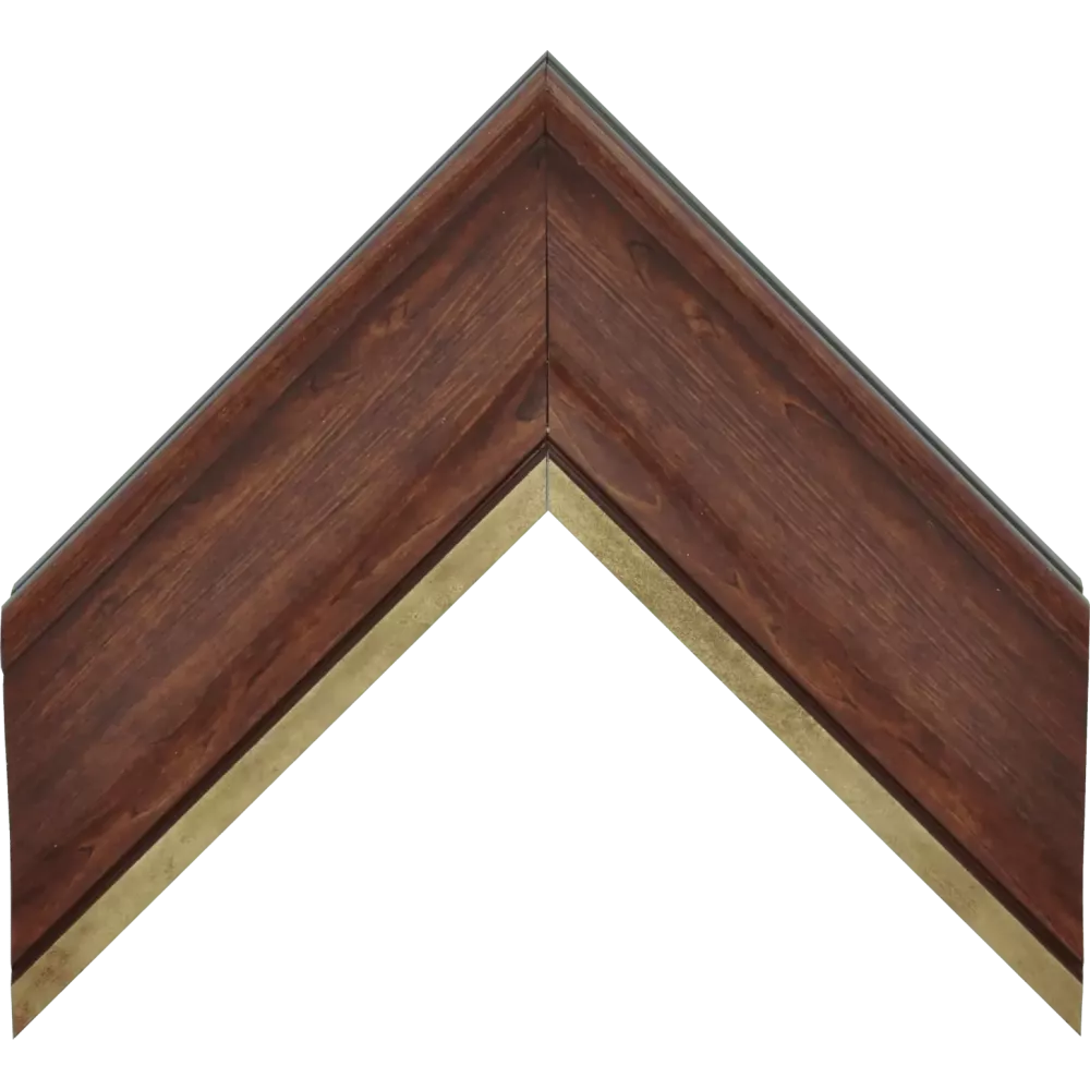 Listwa jest w kolorze brązu z imitacją ciemnego drewna, profil klasyczny z wysokim felcem polecany do obrazów olejnych i większych rozmiarów, bok w kolorze ciemnego brązu.